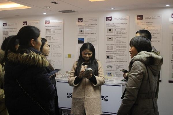 活动中,紫光物联的张主管给我们介绍了物联网相关的一些知识,比如采用控制协议zigbee 来进行数据的控制传输,还在一楼大厅给我们现场演示了一些怎么用手机软件APP来控制大门的关合,空调的开关,灯光的强弱等效果,给我们耳目一新的感觉。