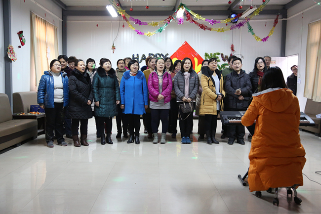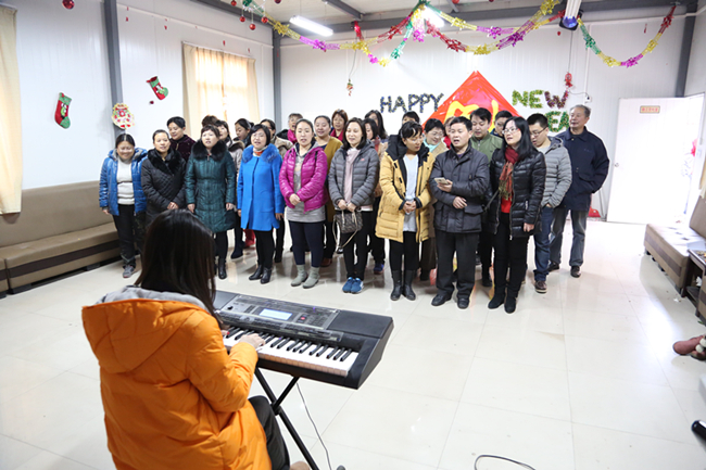 2015年12月29日,商务系全体成员集中训练,准备迎接学校工会组织的全校教职工迎新年合唱比赛。