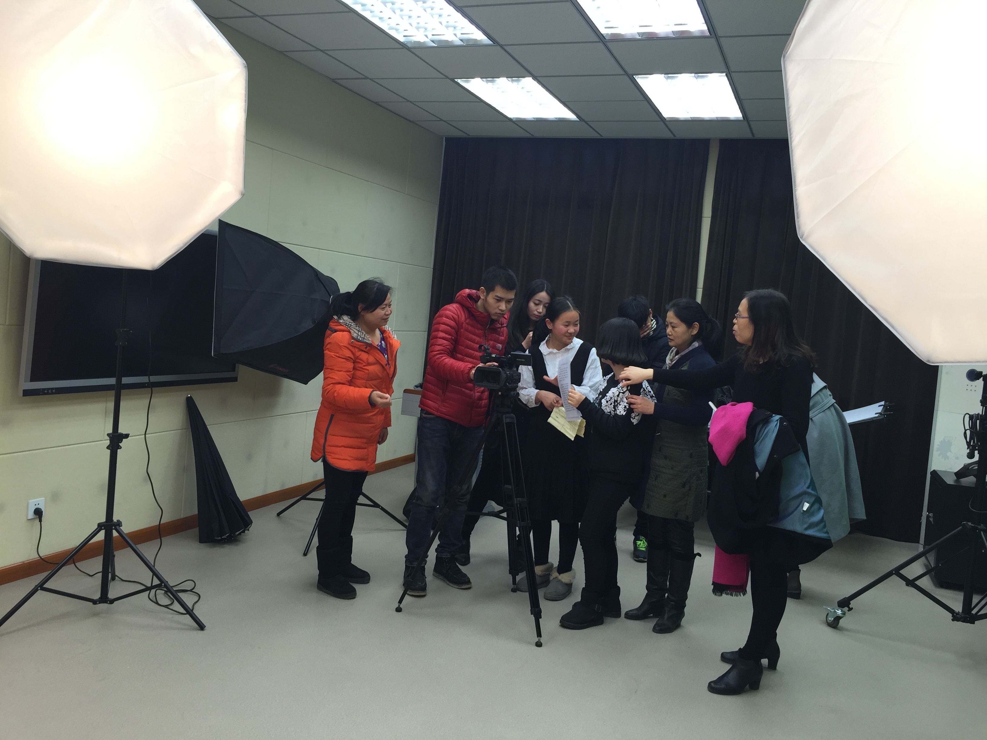经过班级初选后,任课老师对参赛学生在稿件撰写、演讲技巧、仪容仪表等方面进行一对一的精准辅导。2016年1月14-15日,在学校录播摄影实验室完成演讲录像,最后又在老师辅导下完成作品光盘制作。