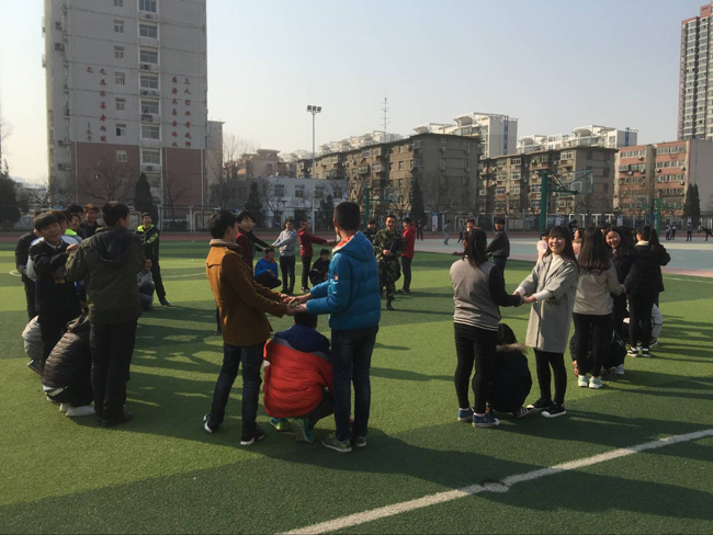 为了培养学生的团队精神和目标意识,学生处(团委)于2016年2月28日下午在操场对2016春季新生进行拓展训练。训练分为两步,第一个是经典热身项目松鼠大树,主要帮助同学们放松心情,具体是三人一组,两人面对面站立,双手向上交叉握成大树状,当喊出口令时第三位同学需要立即蹲下从两个人中间穿过去。第二个培训项目是团队PK赢跑,具体是两人一组猜拳,赢的人跑,输的人追。在规定的路程内,没有追上赢的人,赢的一方获胜,反之输的一方获胜。比赛实行单人淘汰制,先全军覆没的一方为输!这个项目的主要是目的帮助同学们了解分析目标的重要性,领悟到在以后的学习生活中也需要设立自己的目标,不虚度美好的学习时光。