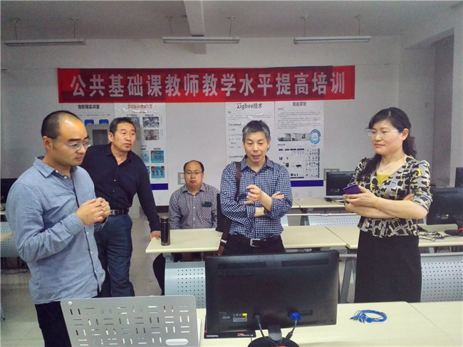2016年4月23日,濮阳高级技工学校田相林校长一行莅临我校参观交流。田校长一行在电子工程系史娟芬主任的陪同下,参观了电子工程系物联网实训室、物联网体验馆、制冷实训室等处。田校长参观了电子工程系智能家居、智慧商超等实训项目,并体验物联网实训设备。田校长表示我校电子技术应用专业物联网方向已经走到了行业前列,值得同行借鉴。