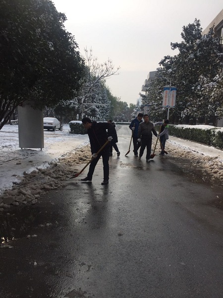 2016年的第一场雪,在给人们带来欣喜的同时,也为广大教职工的出行带来了诸多不便和安全隐患。11月23日一大早,河南信息工程学校在校领导的带领下,率先将校园门口的积雪清理干净,随后我们计算机技术系按照划片的区域,拿起扫把、铁锹等,开始清理实训楼前的积雪。来到到扫雪地点后,大家迅速投入紧张的劳动当中,每个人都发扬了不怕苦、不怕累的精神,不到一个小时,就把积雪打扫的干干净净,极大地方便了过往的师生和车辆。