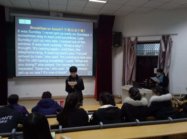 根据学校关于本学期第二课堂活动的要求,我系于12月8日下午16:30-18:00在大屏二和大屏教室三举办了全校学生15级和16级英语朗诵比赛的第二课堂活动。15级有60名学生、16级有74名学生参加了第二课堂活动,英语教研组的全体老师都参加了比赛的全过程。我系组织得力,学生们参与的积极性高,发音较准,取得了活动的预期目标。