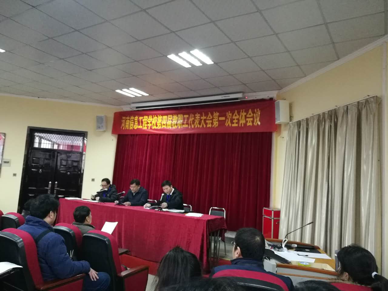 2017年1月6日下午和7日全天,培训中心6名职工代表,准时到学校八角楼道德讲堂,参加了河南信息工程学校第四届教职工代表大会第一次全体会议。