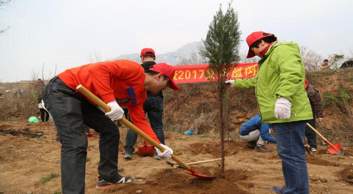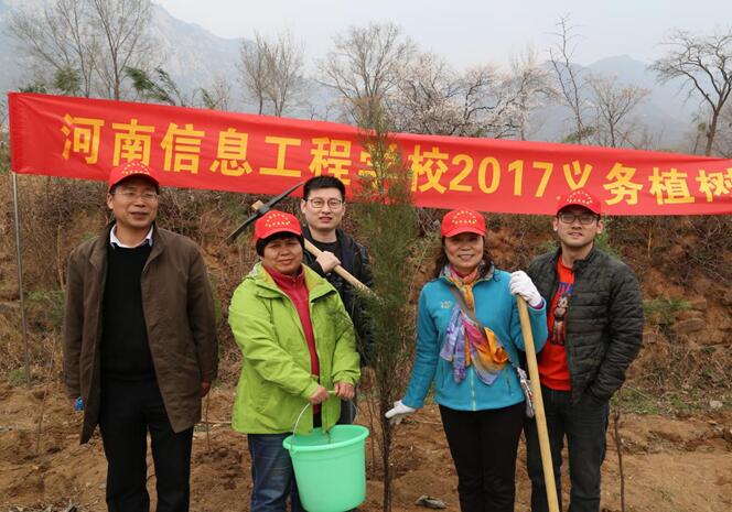 艺术系教师响应学校开展植树节义务植树的号召,积极参与此次义务植树活动。2017年3月18日清晨,大家驱车来到了郑州市义务植树基地,分发提前准备好的小树苗和铁锹、水桶等工具。春风虽寒,但大家植树的热情不减,个个忙的不亦乐乎,有挖坑的、植苗的、填土的、担水的,大家分工明确、配合默契。经过半天辛勤的劳动,百十棵树苗都安了家。