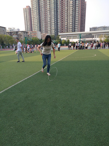 9月20日下午,商务系全体教工积极参加了校工会在学校运动场组织的“滚铁环”游戏活动。