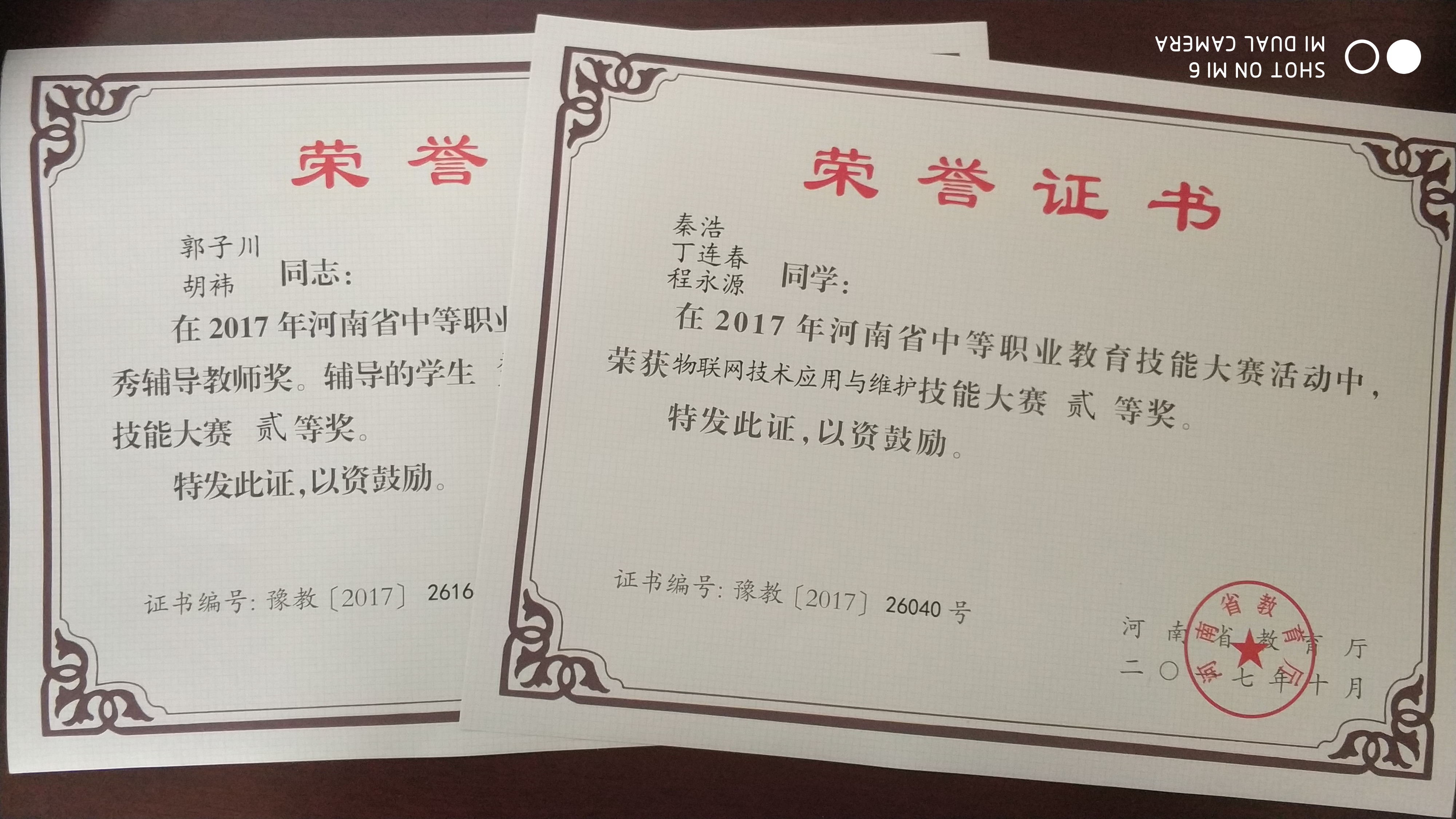 10月19日上午,2017年河南省职业院校技能大赛中职组物联网技术应用与维护赛项在郑州市电子信息工程学校举办,我校电子工程系三名学生丁连春、程永源、秦浩组成的代表队表现优异,获得本次比赛二等奖的好成绩。