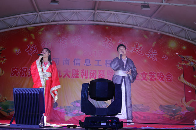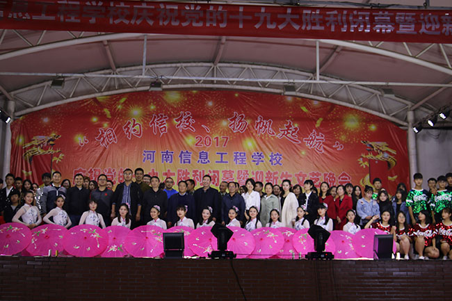 金秋收获季,我校喜迎新,按照学校年度工作计划和校领导的指示精神,2017年10月26日18点30分,“相约信校扬帆起航”河南信息工程学校庆祝党的十九大胜利召开暨迎新生文艺晚会在校运动场隆重上演,寇守峰校长、聂子明书记、副校长宋廷楷、盛兴文、薛东亮、思贤中学主管校长陈星等领导和来宾与各位老师、同学们一起观看了演出。