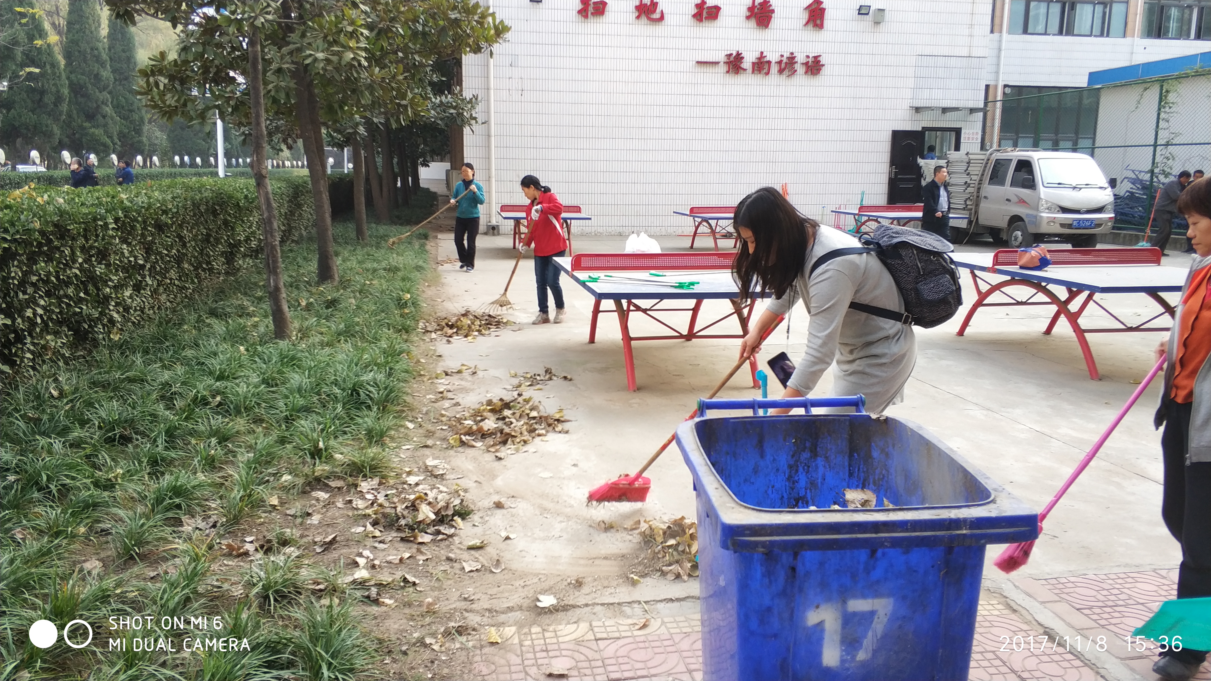 2017年11月8日,我校电子工程老师参加校园卫生大扫除活动。下午14:50分,大家准时来到电子工程系卫生区(八角楼东侧绿化带)。在分发完工具以后,大家开始对绿化带中的枯枝落叶、塑料包装、矿泉水瓶等垃圾进行了清理。