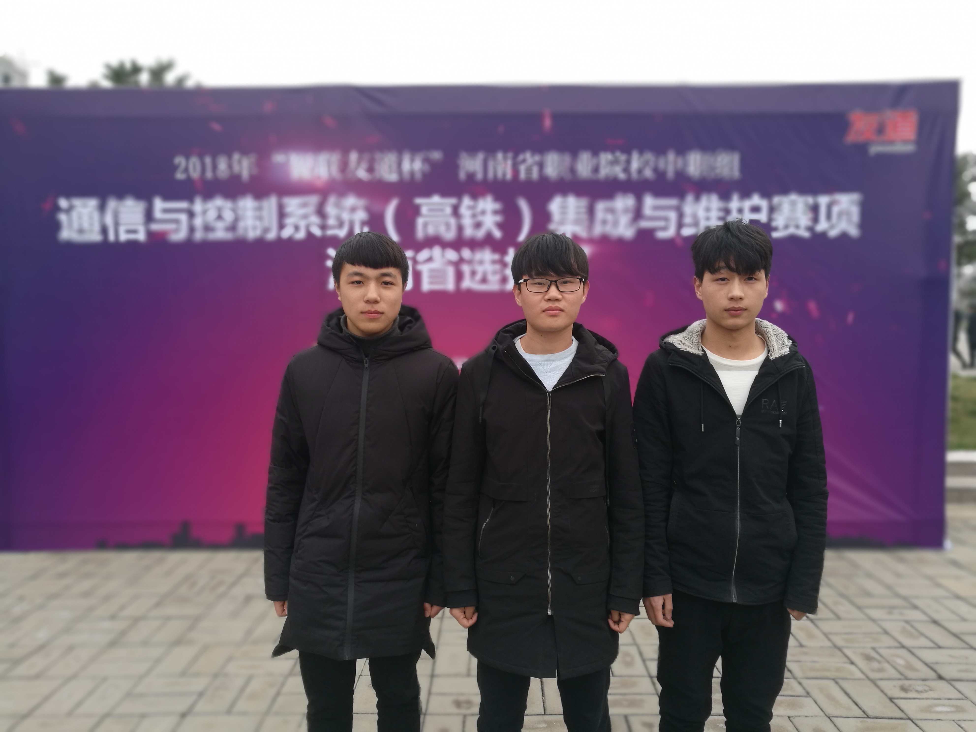 2018年3月19日-20日,河南省参加2018年全国职业院校技能大赛中职组信息技术类通信与控制系统(高铁)集成与维护选拔赛在洛阳铁路信息工程学校举行。我校电子工程系学生孙传松、郑仑、常强河组成的参赛队表现优异,获得第二名的好成绩。