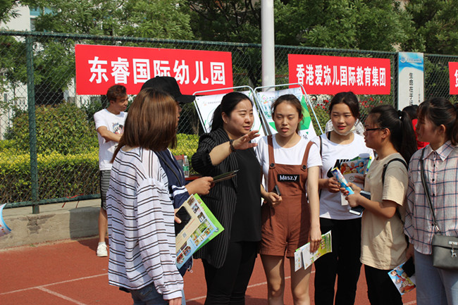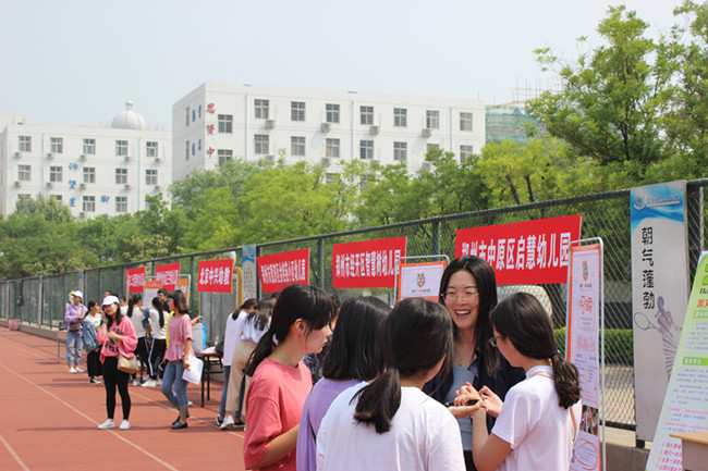 在校领导的高度重视和大力支持下,我校招生就业处、学生处(团委)和商务系密切配合、积极组织,5月8日上午,商务系学前教育2016级专场校园招聘会在我校体育场成功举办。