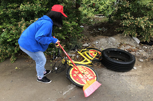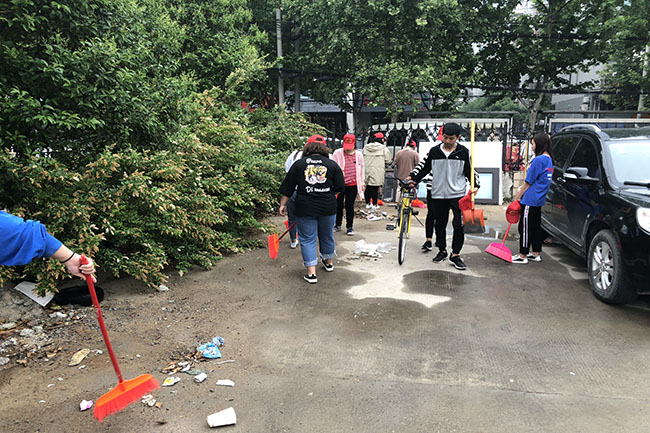 上午8点半,志愿者准时在学校教学楼前广场集合,在中国共产主义青年团团旗的引导下,大家来到预先指定地点参加劳动。头戴小红帽,手持扫帚、铁锹、搓斗等工具带着饱满的热情投入到劳动中来,对沿街两边的卫生死角的垃圾进行清理,把清理的垃圾收集到附近的垃圾桶内,并从垃圾堆里清理出两辆废弃多日的共享单车,对单车进行清理后整齐摆放至路边,努力为社区民众营造整洁优美、舒适健康的生活环境。