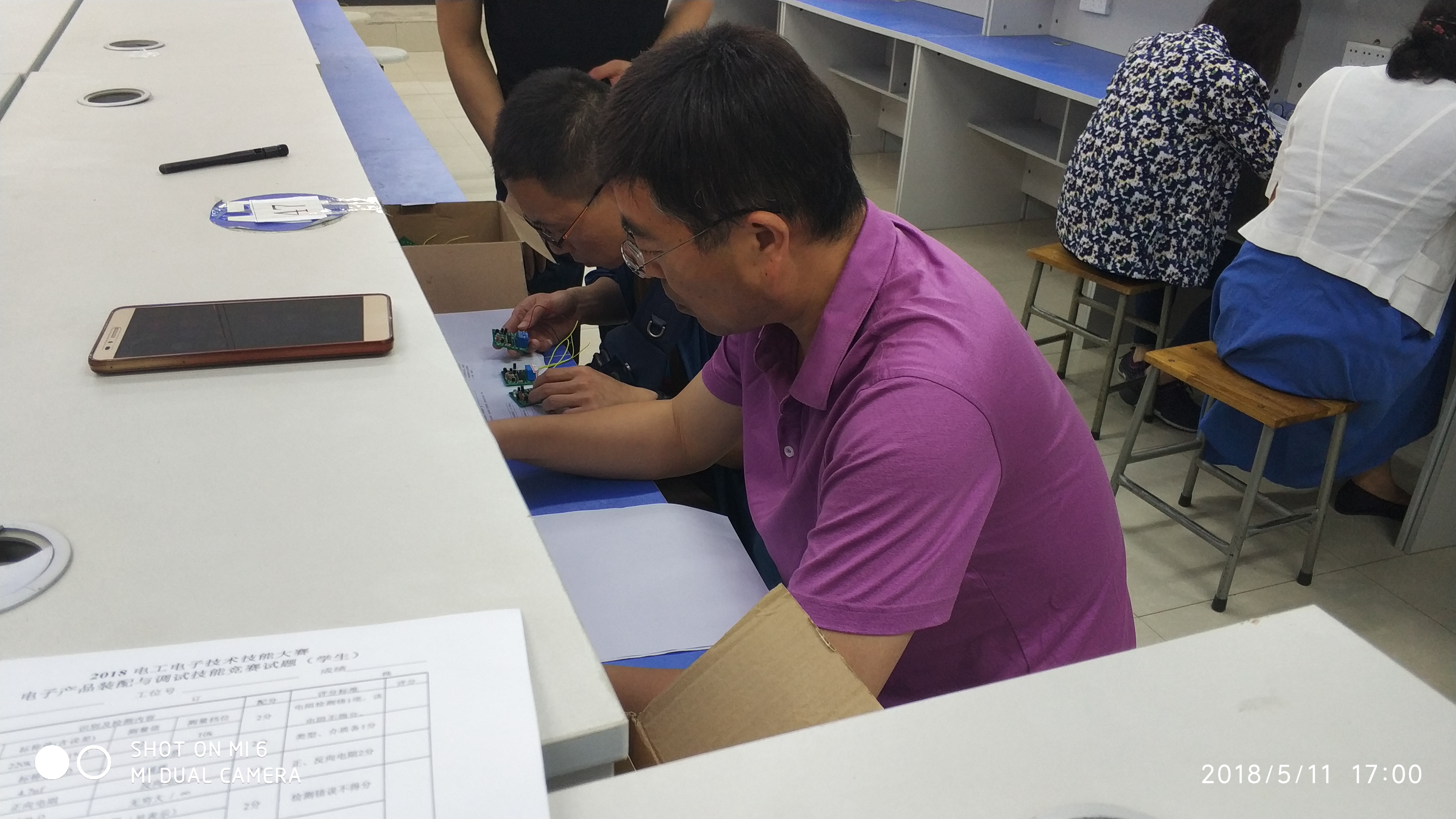 2018年5月11日下午,我校电子产品安装与测试比赛在实训楼301、302、402室举行。本次比赛由电子工程系承办,比赛方案参照《2018年河南省中等职业教育技能大赛全员化试点项目电子电路安装与测试比赛方案》实施。整个过程模拟省赛流程,报名采用“自愿报名+随机抽考”的方式,比赛前抽取工位号,按工位号公布成绩。