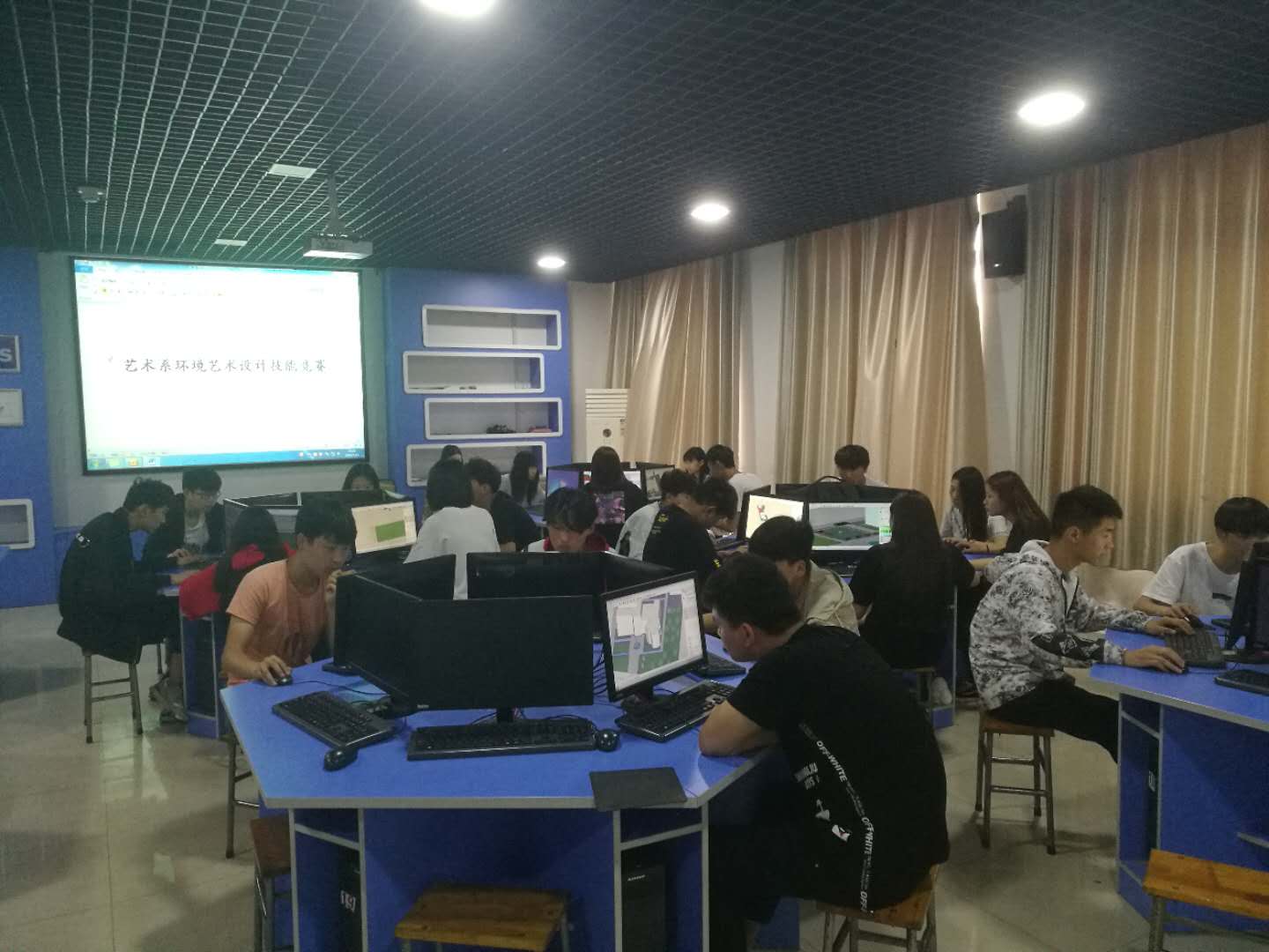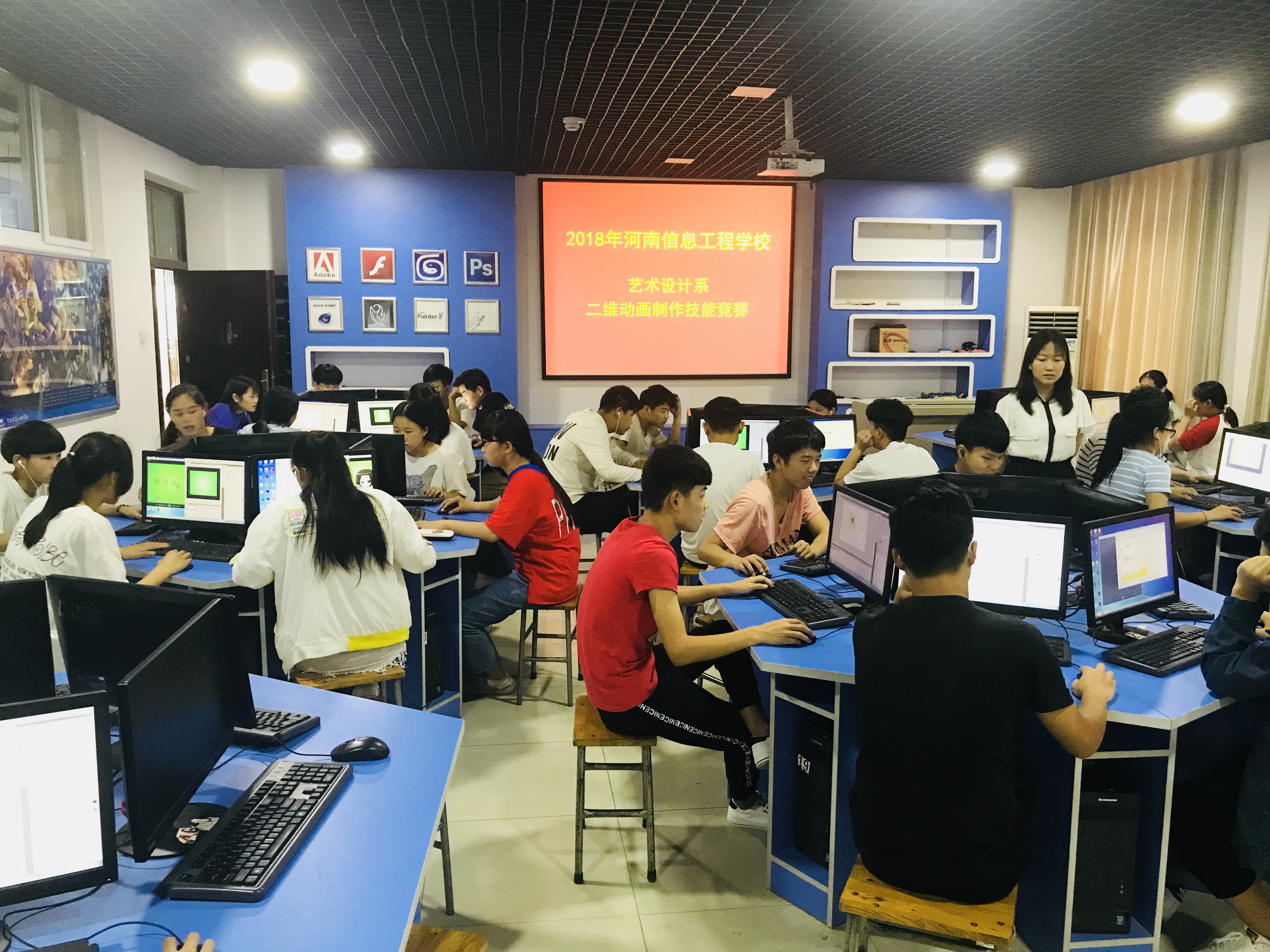 艺术设计系于5月18日(周五)下午2:30-17:30在综合实训楼1楼、2楼和5楼机房举行了2018年全校技能竞赛的第2场比赛,竞赛项目有图形设计与制作、CAD室内设计效果图、二维动画制作。我系2017级学生全体参与,其中17级1--4班参与了图形设计与制作的比赛,17级5班参与了二维动画制作的比赛,17级6、7班参与了CAD室内设计效果图的比赛,比赛总人数为300余人。学校和我系对此次竞赛活动高度重视,我系所有教职工全员参与此次竞赛活动,活动组织得力,学生参与的积极性也很高涨,取得了活动的预期目标。至此,我系2018年度技能竞赛活动圆满结束。