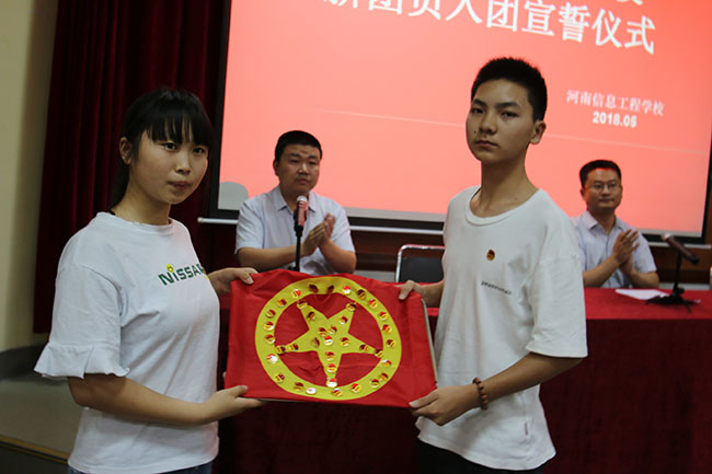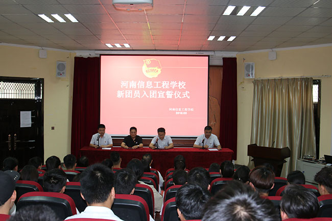 2018年5月29日14:40,河南信息工程学校新团员入团宣誓仪式在道德讲堂隆重举行。我校党委书记常涌涛、副校长宋廷楷、学生处(团委)中层干部和部分老团员出席了仪式。仪式由张凯处长主持。