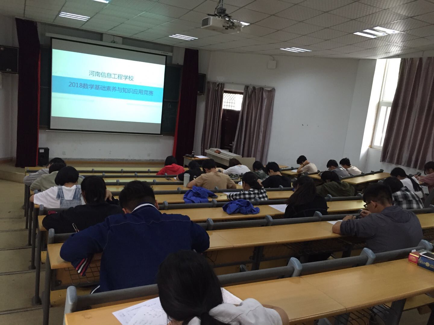 2018年5月22日下午,基础部在学校大屏教室和道德讲堂成功组织了2018年度河南信息工程学校学生技能竞赛的素质类竞赛。本次竞赛共4个赛项:汉字听写、成语接龙、中华优秀传统文化与历史故事、啦啦操、数学基础素养与知识应用。
