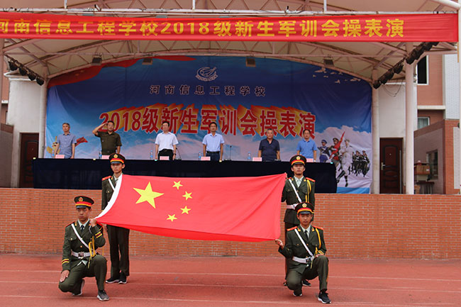 2018年8月22日下午,2018级新生军训会操表演在校运动场举行。河南信息工程学校校长聂子明、副校长宋廷楷、盛兴文、薛东亮、郑州市第47中学书记王玉增、郎雅特训营总队长包士军出席仪式。仪式由宋廷楷副校长主持。