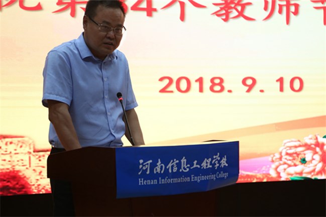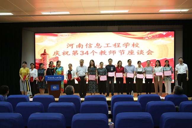 春播桃李三千圃,秋来硕果满神州,在9月10日教师节河南信息工程学校隆重举行了“庆祝第34个教师节座谈会”。校长聂子明、副校长宋廷楷、副校长盛兴文、副校长薛东亮、工会主席王雪瑞及全体教职工参加座谈会。