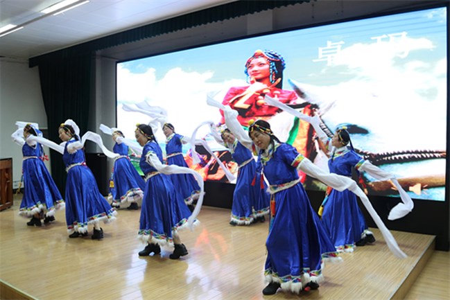 学校各部门教师职工代表呈现了歌曲、舞蹈以及诗朗诵等文体表演,整个活动现场充满了喜悦和温情。