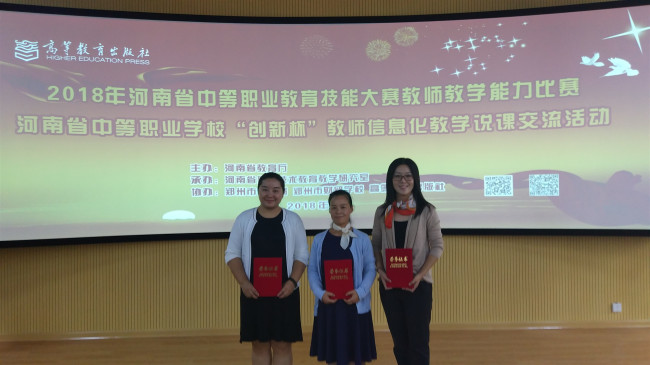 新学期伊始,好消息传来。由我系贾宇灿、尹顺丽、崔磊磊三位教师组成的参赛团队荣获了2018年河南省中等职业教育技能大赛教师教学能力比赛两个一等奖的优异成绩。