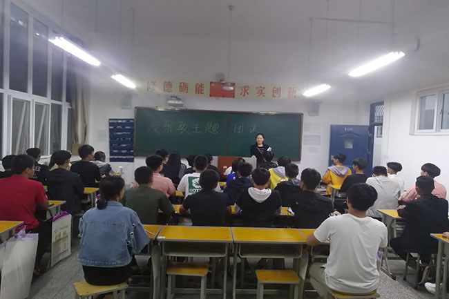 根据学生处(团委)《关于开展“崇尚科学 反对邪教”系列活动的通知》要求,2018年9月17日,学生处(团委)组织各班开展“崇尚科学 反对邪教”主题团课。