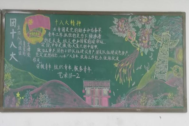 为了推动习近平总书记“7·2”重要讲话精神和团的十八大精神在青年心中落地生根、开花结果,2018年11月,我校举办“学习‘7·2’重要讲话精神 落实团的十八大精神”主题黑板报。