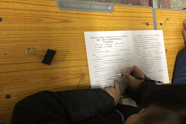 2018年12月25日,我校开展习近平总书记“7·2讲话精神”和团的十八大精神知识测试。测试采用闭卷考试,试题包含填空、单多项混合选择、简答等形式。在考试组织过程中,相关老师认真组织,严格监考。在近45分钟的考试过程中,同学们认真作答,考场秩序井然。