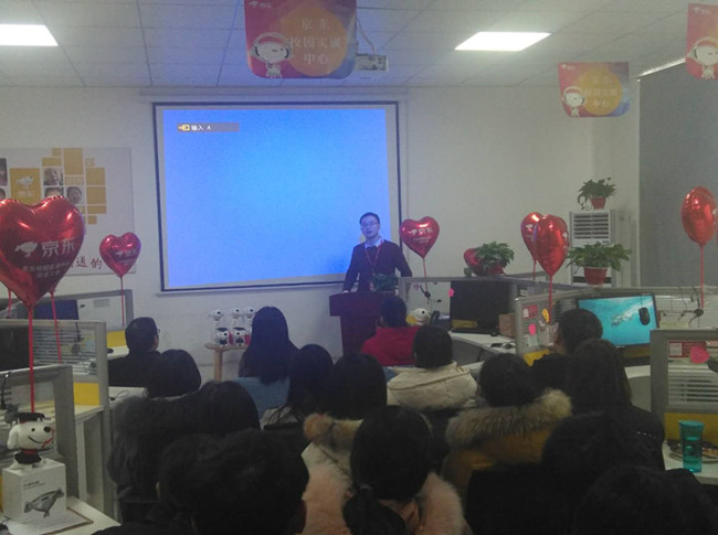 1月2日下午,京东校园实训中心在教学楼中心实训室召开年终总结表彰会。商务系主任尹顺丽、教务处副处长马书群、商务系副主任崔磊磊,京东集团驻我校项目负责人何山、培训师刘帅和班主任代表出席会议,京东班全体实训学生参加。