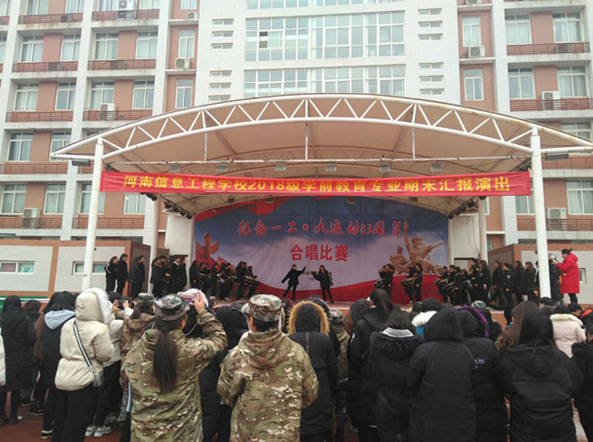 迎着纷飞的雪花,1月9日下午,商务系学前教育专业音乐订单班期末汇报演出在学校操场舞台准时进行。该班全体学生参加演出,商务系主任尹顺丽、副主任崔磊磊,学前教育教研组长李莉和专业教师贾宇灿、胡蓉、张梦卓及商务系17、18级学前教育专业全体学生出席了本次演出活动。