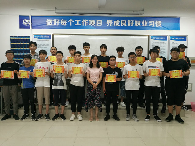 2019年5月7日至6月4日,机电工程系举行了《维修电工》、《CAD成图技术》、《汽车二级维护》三项全员化竞赛和《汽车知识竞答》比赛。本次竞赛经过系部老师精心组织、培训、预选,选拔出126名学生参加决赛。经过一轮又一轮的激烈的角逐,最终评选出一等奖13名、二等奖18名、三等奖28名。为表彰获奖选手,以赛促教、赛教融合,弘扬劳动光荣、技能宝贵、创造伟大的时代风尚,6月12日下午,机电工程系在实训楼四楼举办获奖学生的颁奖活动。