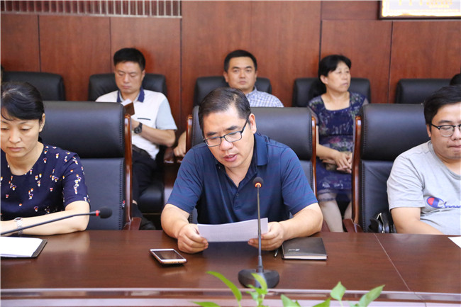 机关党支部王晓辉发言,感谢时代赋予自己的教师责任,感谢学校各级领导的悉心关怀和正确指引,在今后的工作中将继续发挥自身优势,以饱满的热情和踏实的作风投入到工作中去,“做党和人民满意的人民教师”,为学校未来的建设和发展,贡献自己的力量。
