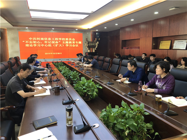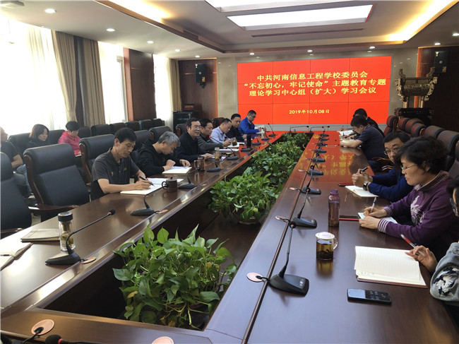 2019年10月8日,校党委组织召开了“不忘初心,牢记使命”主题教育专题理论学习中心组(扩大)学习会议。校党委成员及全体中层干部出席,会议由校长聂子明主持。