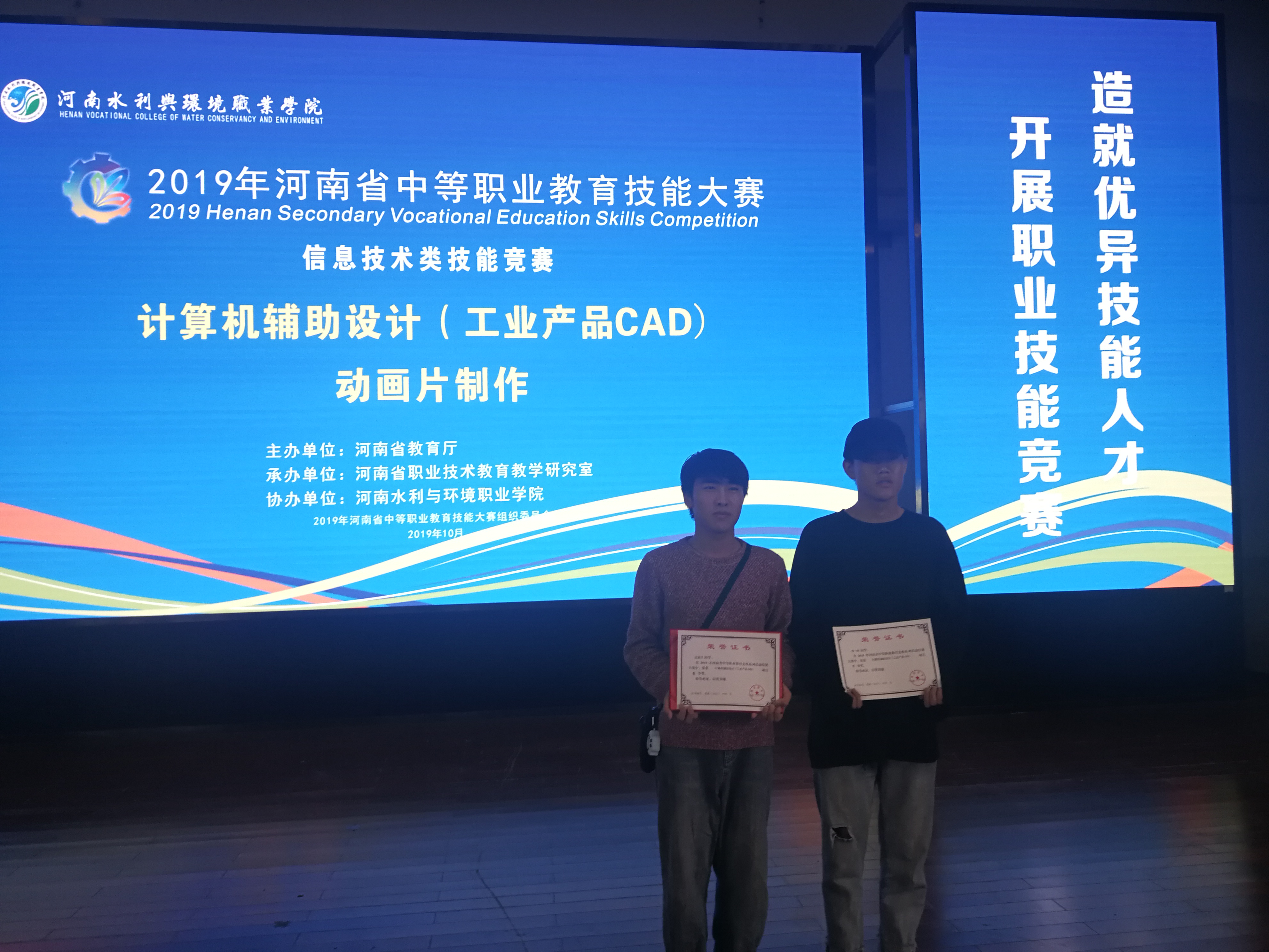 10月19日上午,2019年河南省职业院校技能大赛中职组计算机辅助设计赛项在河南水利与环境职业学院举办,艺术设计系教师邓爱娇、王依凡参加了本赛项教师组竞赛,学生沈涵洋、钞一鸣参加学生组竞赛,去得一个一等奖、两个二等奖和一个三等奖的优异成绩。