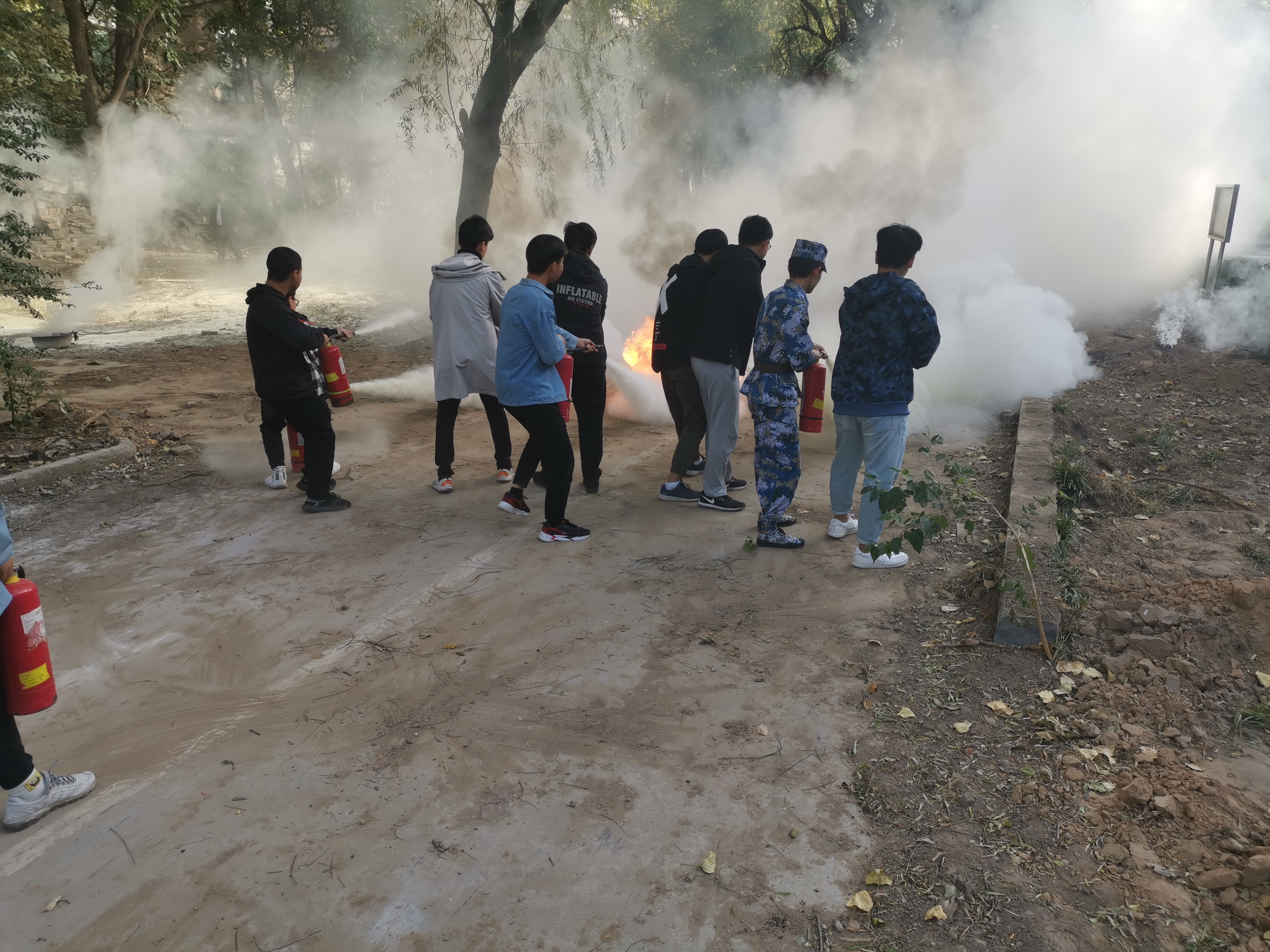 此次活动邀请到了河南中安消防安全服务中心的解文宇教官为同学们讲解了突发火灾的处理办法、逃生办法、干粉灭火器的操作步骤及方法并对灭火器进行了实操演练。本次活动组织既紧张激烈,又有条不紊。在实操演练环节中,同学们克服了心中的恐惧,沉着冷静并严格按照教官的操作要求,最终成功把目标火源成功扑灭。