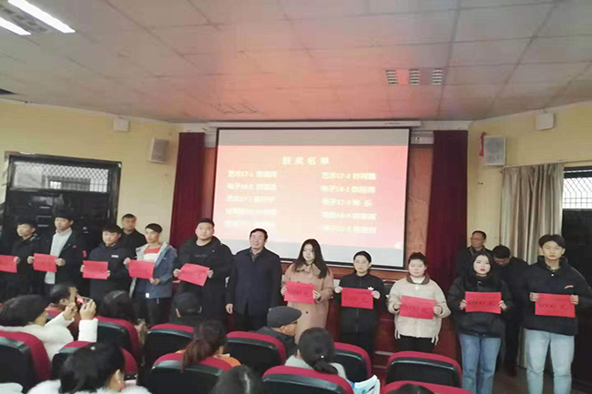 中职国家奖学金用于奖励中等职业学校全日制在校学生中在德智体美劳方面特别优秀的学生,今年我校共有196人申请,经严格把关、层层选拔,共有10名同学最终获得2018-2019学年国家奖学金。薛东亮副校长宣布获奖同学名单,并向他们表示祝贺,号召广大同学学习获奖同学努力学习、争当先锋的精神。