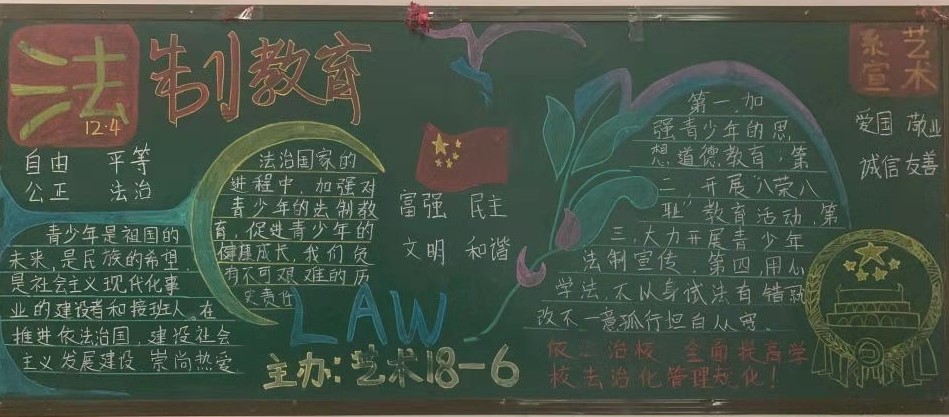 为进一步深入贯彻落实党的十九大和十九届二中、三中、四中全会精神,认真落实习近平总书记关于宪法学习宣传的指示,我校于2020年1月2日组织开展了普法教育系列活动之宣传板报评比活动。