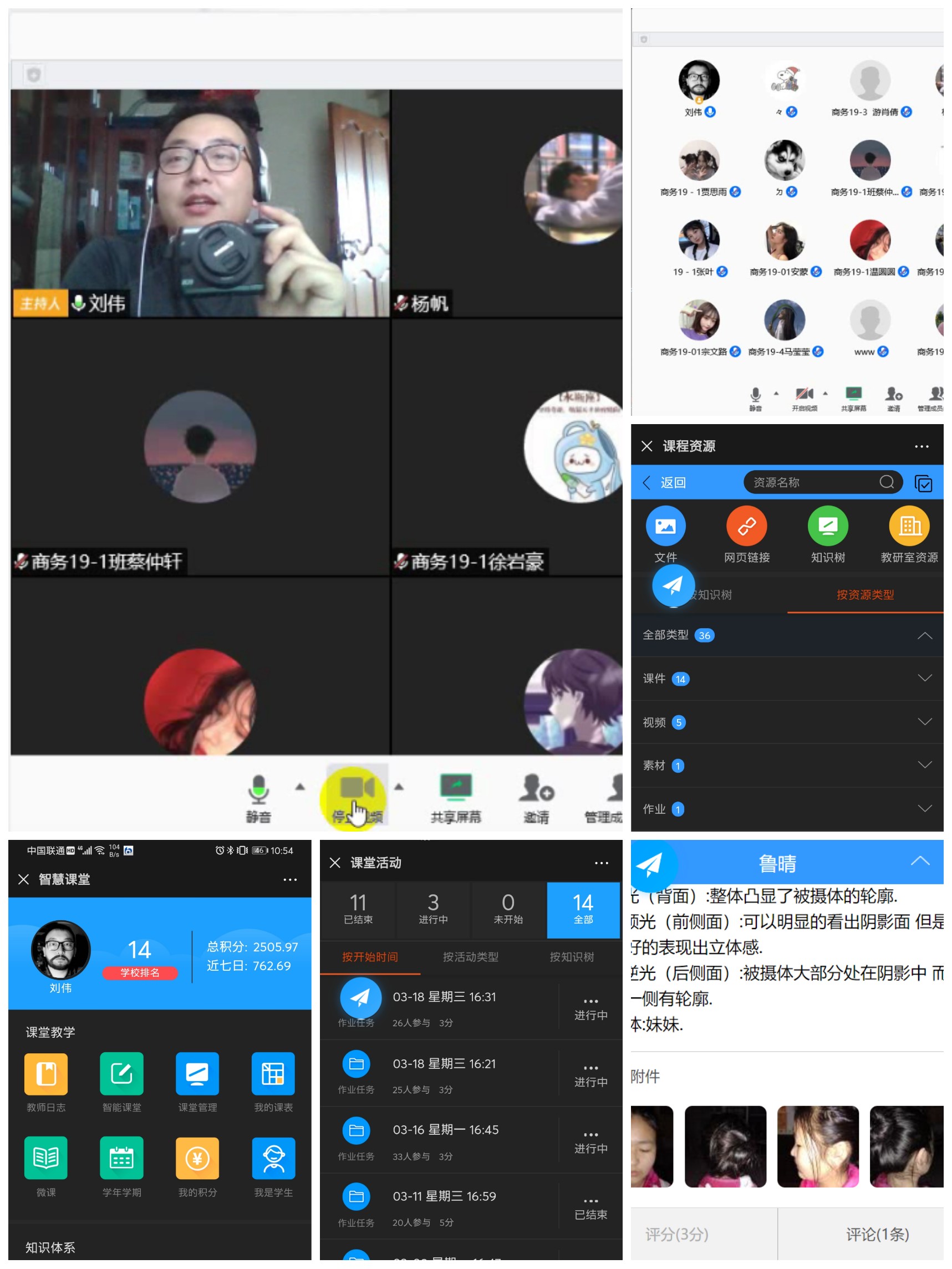 七、晏晓喻,硕士,高级讲师,商务系英语教师,曾获得省教育厅优质课比赛二等奖。在本次新冠肺炎疫情防控期间承担了电子19级1—6班和计算机19级6—10班的英语直播教学工作。在工作中,深入研究教学内容,制作课件、视频等教学资源,利用腾讯会议直播软件进行直播教学,采用头脑风暴、讨论、讲解等多种形式来激发学生学习兴趣,能更好地掌握学习内容。通过智慧课堂上传学习资源,布置和批改作业,进行考勤和答疑,同时结合微信群进行通知和答疑督促观察学生课下的学习动态,取得了良好的教学效果。