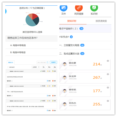 团队召开多次教学研讨会议,研讨网上教学的优势与劣势,充分应用仿真软件及平台化解教学难点,通过智慧课堂测试加强学习效果,应用QQ、微信群督促学生预习复习,使学习效果达到最优化。