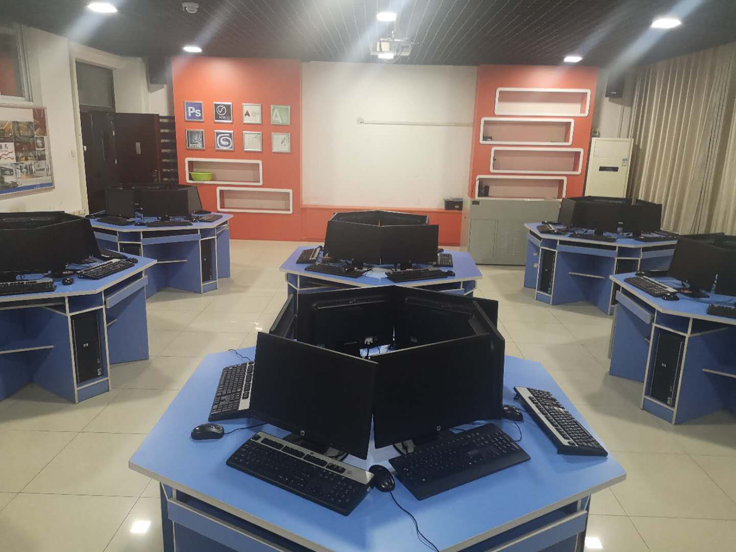1. 平面设计实训室:本实训室主要训练学生平面广告设计制作、图形图像处理、板式设计制作、网页设计制作等操作技能,主要应用于广告设计、网页美工、PS、AI、图文排版等课程的项目教学,同时承担校内外技能鉴定与考核、校企合作项目实施、技能竞赛培训的相关任务。