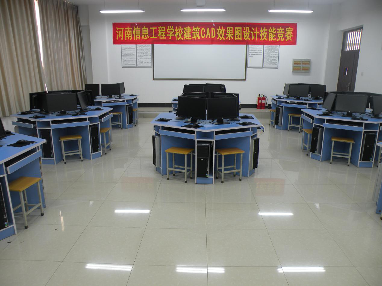 3.室内设计实训室:本实训室主要训练学生CAD电脑制图、3Dmaxs电脑绘图、环艺设计制作等操作技能,主要应用于建筑CAD、3Dmaxs室内效果图、环艺综合实训等课程的项目教学,同时承担校内外技能鉴定与考核、校企合作项目实施、技能竞赛培训的相关任务。