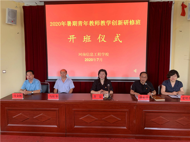 7月31日上午,河南信息工程学校2020年暑期青年教师教学创新研修班开班仪式在道德讲堂举行。我校近三年新进教师参加培训。校长黄磊、副校长薛东亮及党政办、教务处相关负责人出席开班仪式。会议由薛东亮副校长主持,黄磊校长作开班讲话。