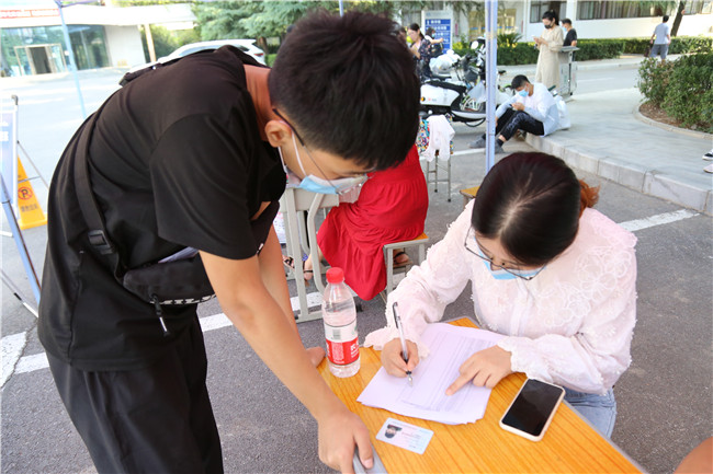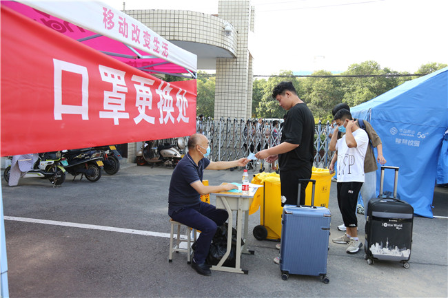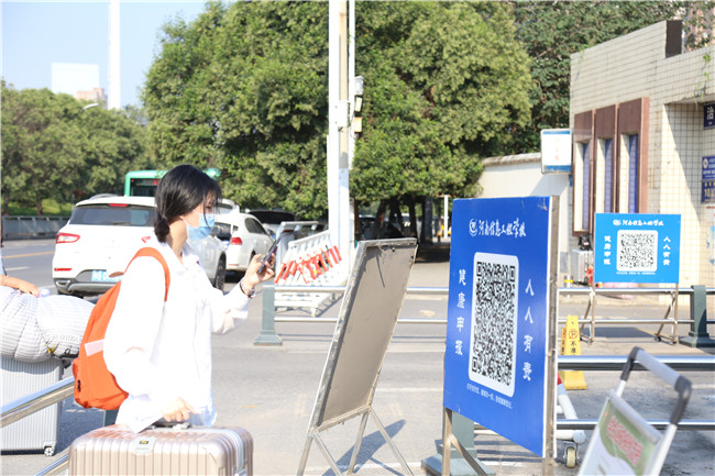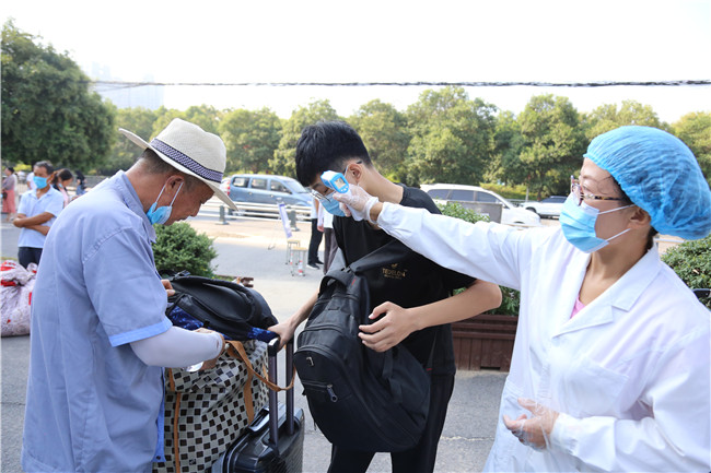 8月28日,我校19级学生返校报到。按照疫情防控工作程序,学校设置了扫健康码、行程码、测温、消毒、更换口罩、确认身份等流程,确保学生安全有序顺利返回校园。