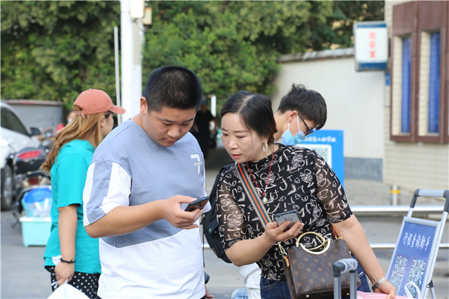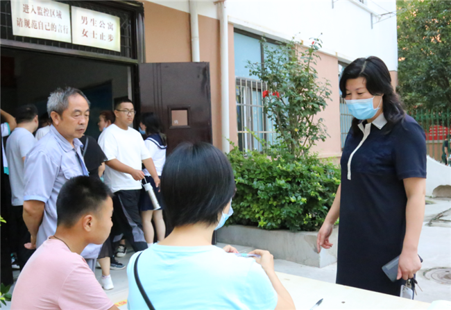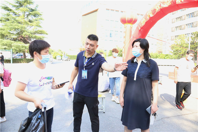 金风送爽,碧空澄澈。上午7点,学校门口排队入校的新生和家长已经比肩继踵。经过扫码、消毒、测温等一系列流程,学生和家长方可入校。学生在老师和志愿者的引导下办理报到手续,结束后学生与家长步行至公寓门口办理入住手续,按学校要求对内务整理。各环节有条不紊,井然有序。