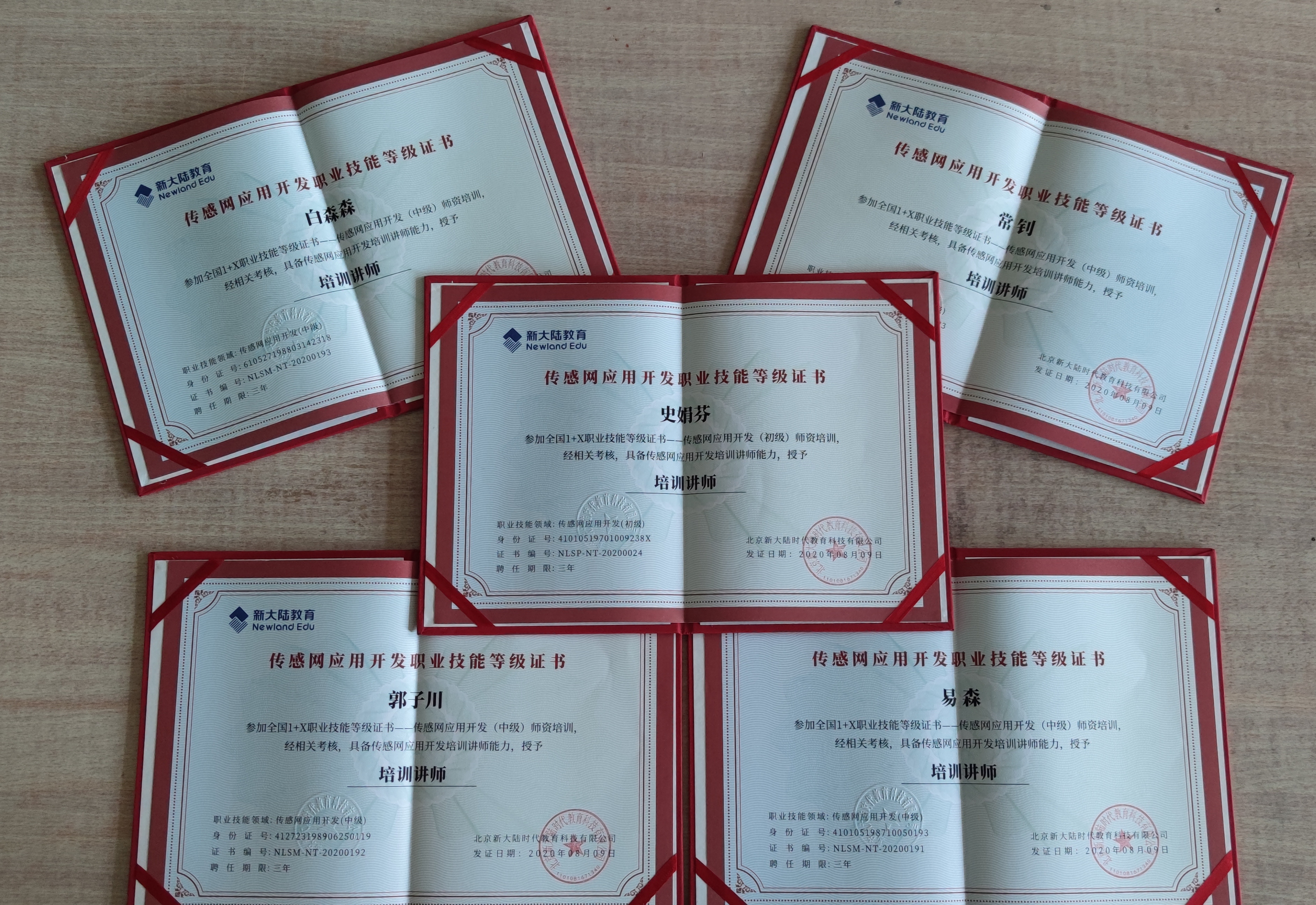 目前,我校已申报成为“传感网应用开发”的1+X证书制度试点院校、“传感网应用开发”的1+X证书考核站点。在今后的职业技能等级认证工作中,我校骨干教师将承担本校的师生培训任务,还将为河南及周边省份的1+X“传感网应用开发”职业技能等级的认证考核提供服务。