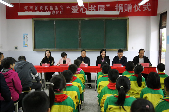 此次帮扶活动是省工信厅在第七个全国扶贫日来临之际,组织了厅机关及厅属单位慰问厅驻村工作队,看望贫困群众,并对我校与河南省扶贫基金会共同筹建的杨坪小学“爱心书屋”进行揭牌。