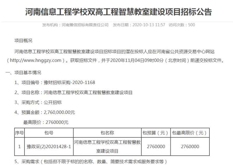 我校双高第二年度智慧教室项目已经开始公开招标,公开招标信息发布网址: