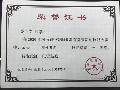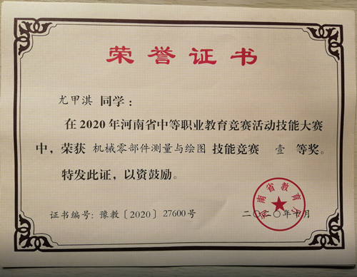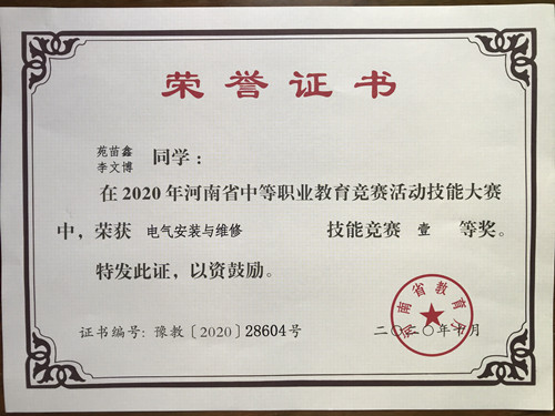 2020年10月16日至24日,机电工程系参加河南省中等职业教育技能大赛电气安装与维修、机电一体化设备组装与调试、维修电工、机械零部件测量与绘图、汽车维修养护基本检测五个赛项的比赛,共有六名学生获得一等奖、八名学生获得二等奖,国赛项目电气安装与维修取得参加明年国赛资格。
