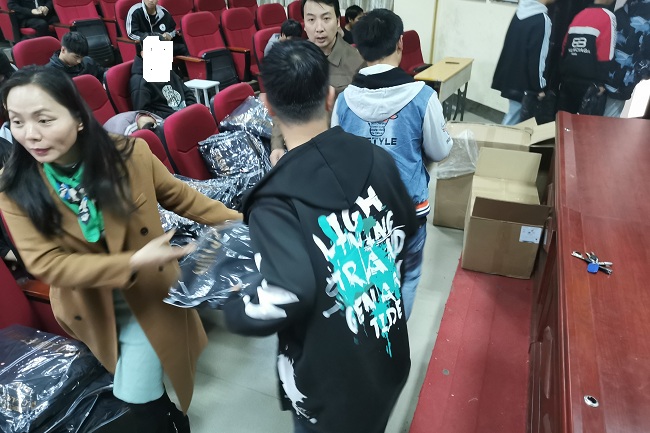 本次送温暖活动采取发放棉衣形式,11月11日下午4:30,学生处处长冀红海、副处长蒋惠英、李冉亲手将一件件棉衣发给了我校2020级建档立卡户79名同学。冀红海处长语重心长,勉励同学们要坚持理想、脚踏实地、勤于学习,努力成为德、智、体、美、劳全面发展的中国特色社会主义事业合格建设者和可靠接班人。在校期间更要遵守纪律,严于律己,要有一技之长,才能肩负家庭重任,早日实现脱贫。冀处长表示学生处将协同其他部门拓展更多的勤工助学岗位,同学们要靠自己的劳动和双手切实减轻家里的负担,同时也让更多家庭经济困难学生感受到学校的关怀和温暖。受助学生纷纷表示,学校的关心让他们倍感温暖,深受鼓舞,在今后的学习生活中将牢记学校和家庭的殷切期望,勤奋学习,早日成才。