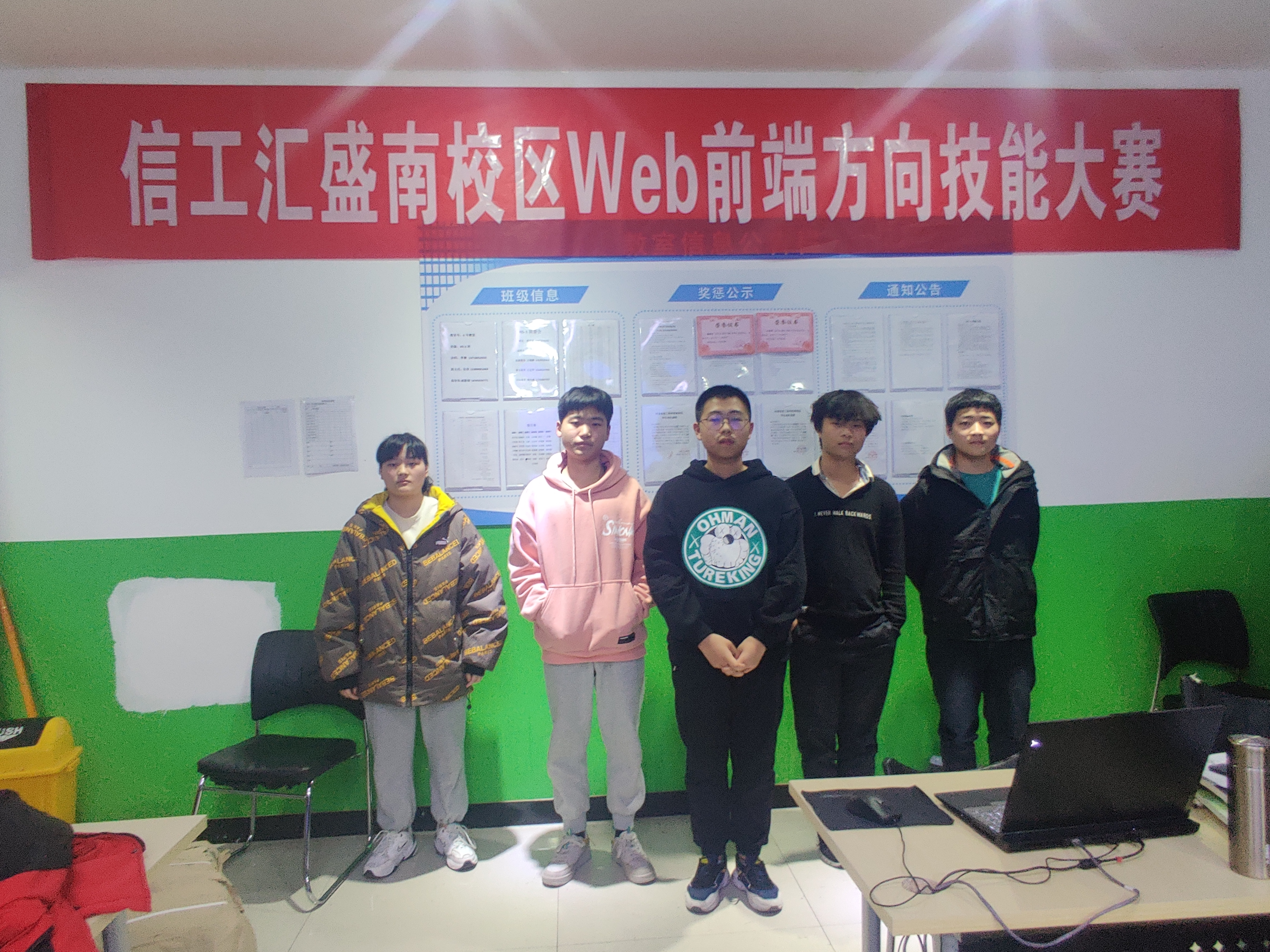 经过几天的展示和评比,最终的决赛在11月27日落下帷幕,最终H5-3班的苏龙飞同学获得此次竞赛的一等奖,郭继中和其他几位同学分别取得二等奖和三等奖。竞赛虽然结束了,但同学们对于项目设计、前端开发的热情却仍然如火如荼。