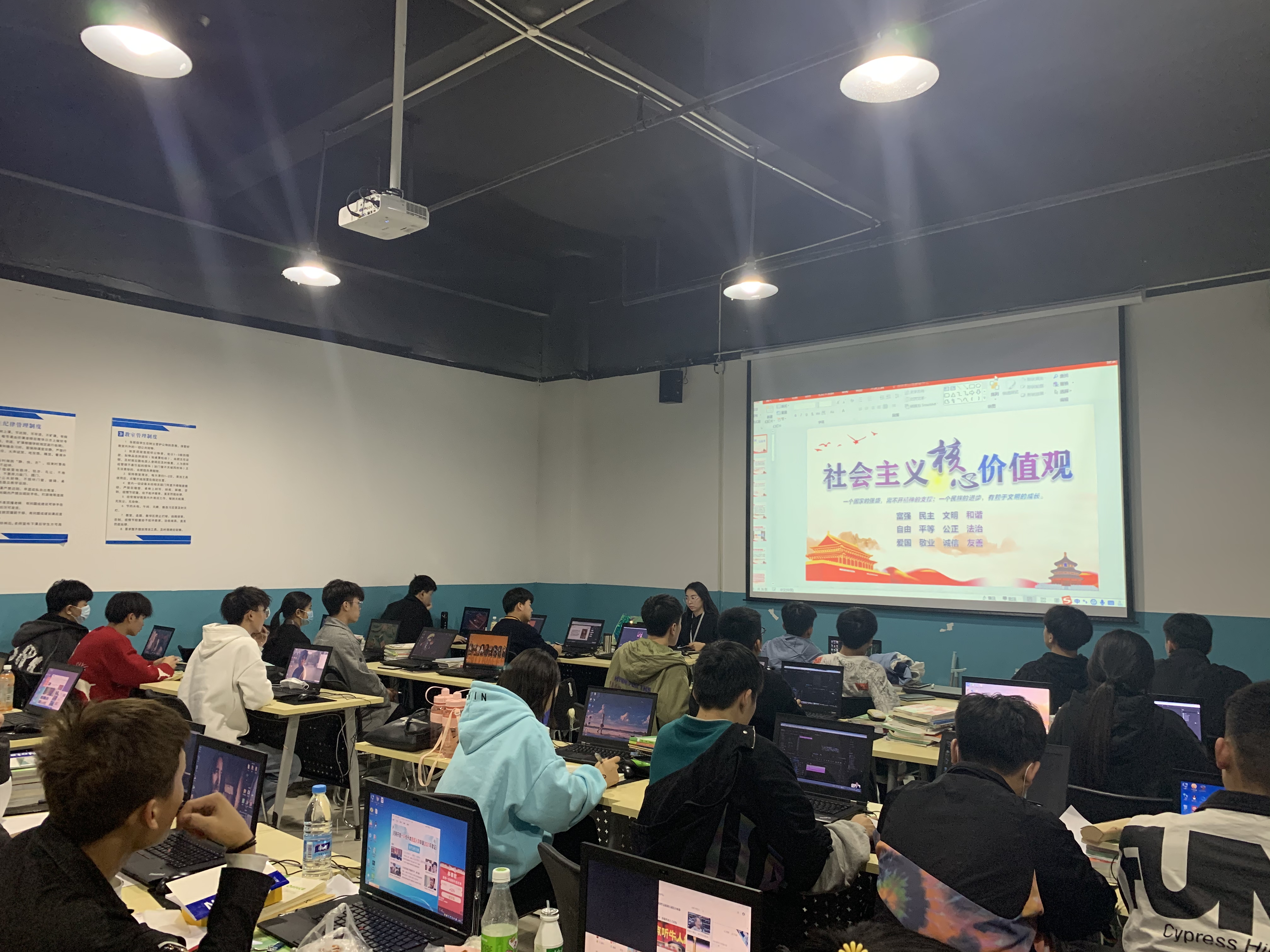 通过主题团课的开展,在班主任老师的教育引导下,深入学习社会主义核心价值观,明确社会主义核心价值观是社会主义核心价值体系的内核,是体现社会主义核心价值体系的根本性质和基本特征,是反映社会主义核心价值体系的丰富内涵和实践要求,是社会主义核心价值体系的高度凝练和集中表达。同时,结合“三个层面”暨国家层面、社会层面、个人层面,来加深领会社会主义核心价值观并付诸于实践;以深入学习习近平总书记在纪念五四运动100周年讲话精神为核心,充分发挥团员青年在学生中的模范带头作用,坚定理想信念,做社会主义核心价值观的践行者与弘扬者。